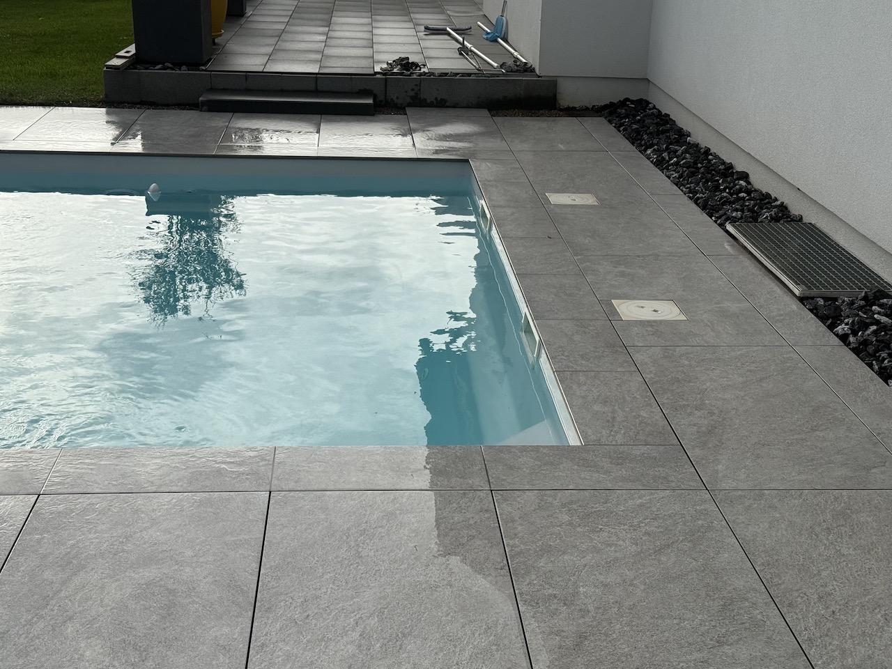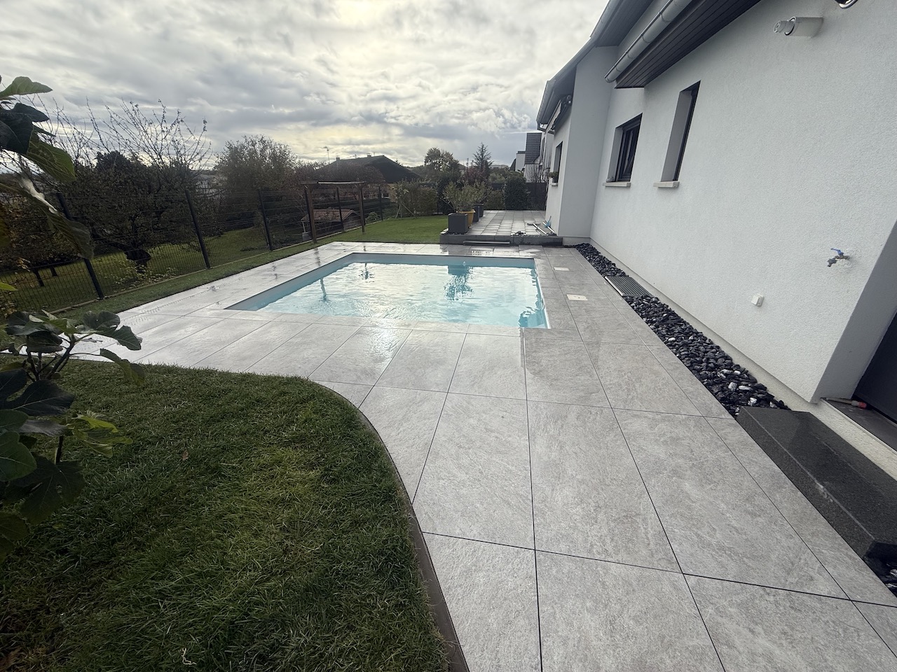 AménagementDallagePiscine Réfection d’un dallage et margelles autour d’une piscine. Philippe 30 décembre 20256 janvier 2026 Aménagement Brise vue et Pare close Composite Dallage Escalier Gazon Gazon synthétique Grillages Massif et Paillage Non classé Pavages Piscine Soutènement Dallage avant travaux! Après Travaux: Dalles Céramiques 120/60/2cm. Margelles céramiques 30/60cm